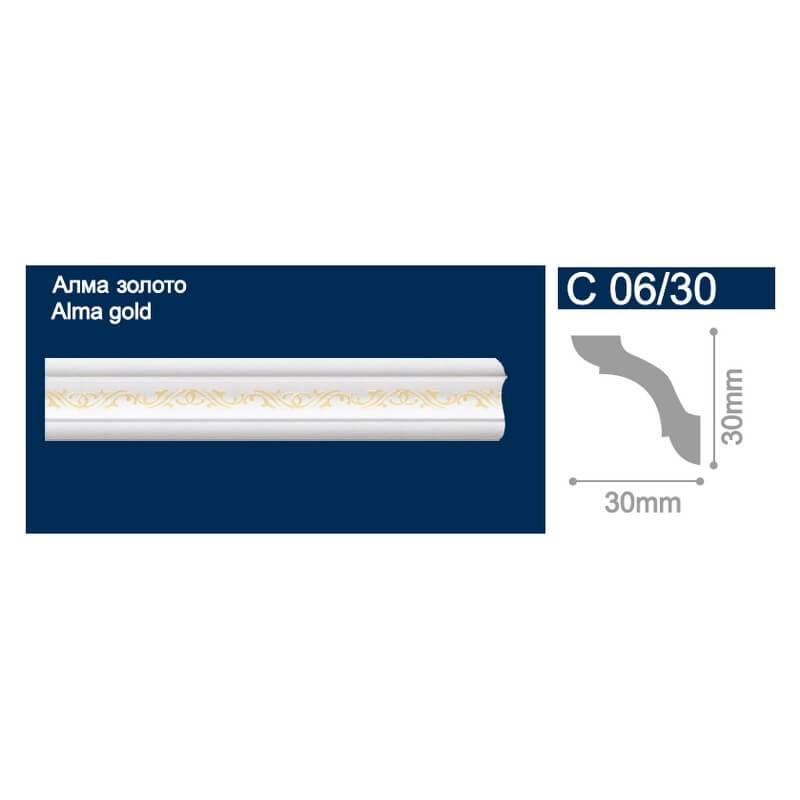Плинтус Алма золото – декоративный потолочный плинтус для внутренней отделки помещений.