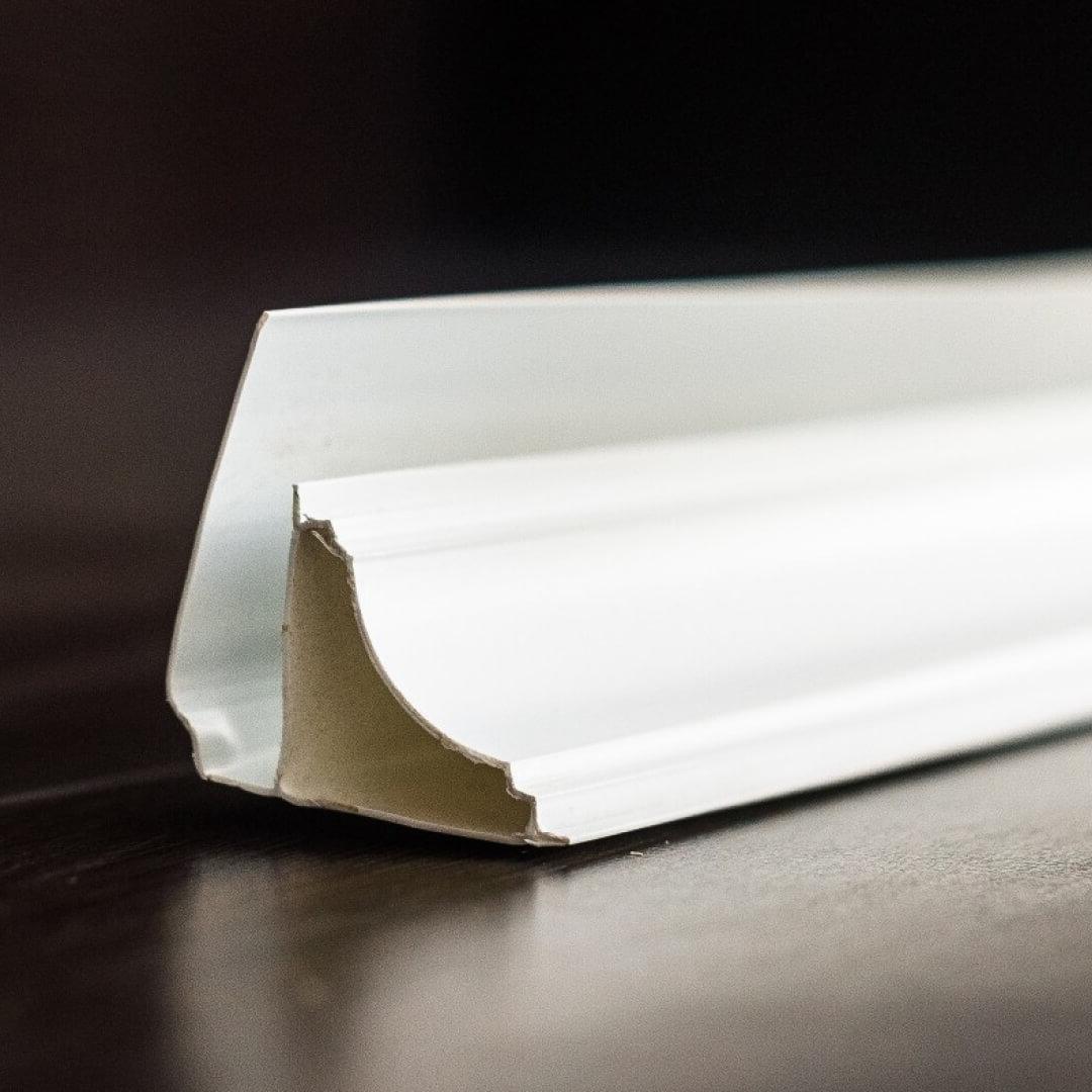 Плинтус изготовлен из ПВХ высокого качества, отличается устойчивостью к влажности, износу, деформациям и перепадам температурного режима в помещении. Предназначен для финишной отделки стыков между потолком и стенами.