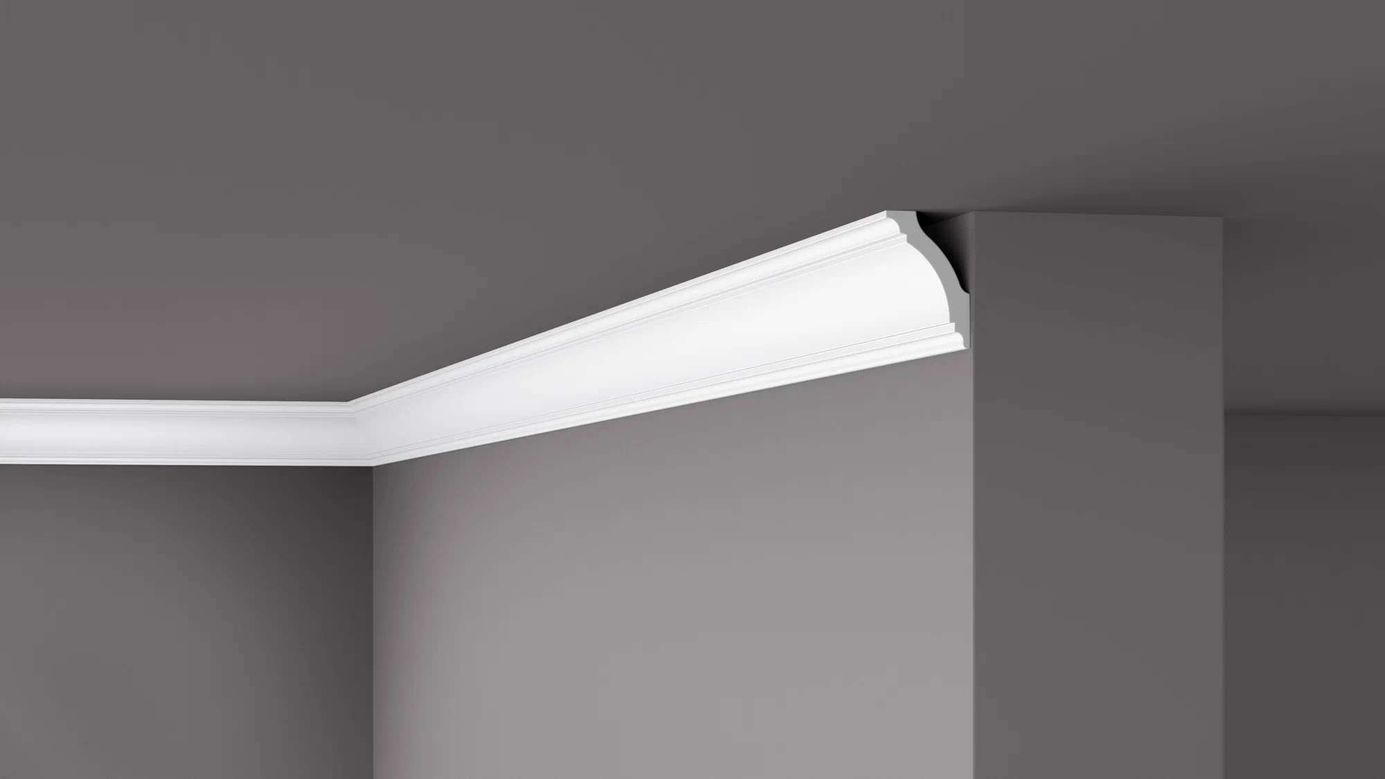 Плинтус потолочный представляет собой ни что иное, как накладной декоративный элемент, который позволяет создать свой собственный уникальный интерьер. В большинстве случаев потолочный плинтус закрывает стык потолка и стены и создаёт законченный вид любого стиля в интерьере. Помимо этого, они способны визуально расширить площадь, а низкие потолки зрительно сделать выше. Данный плинтус с легкость можно окрасить в любой нужный для вас цвет, что поможет олицетворить вашу авторскую задумку.