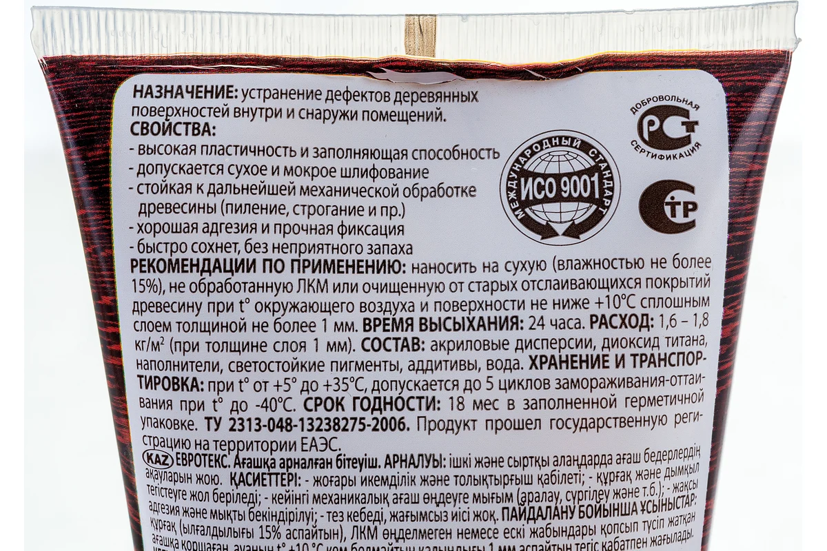 эффективно устраняет любые дефекты деревянных поверхностей: обладает высокой пластичностью и заполняющей способностью;