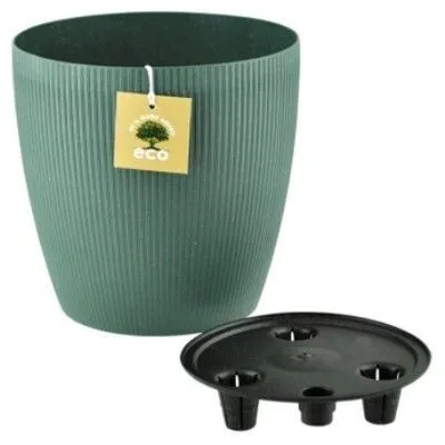 Горшок предназначен для посадки комнатных растений. Он сделан из пластика и древесного наполнителя, визуально напоминает керамический горшок и имеет небольшой древесный запах. Это экологически чистый продукт, который полностью подлежит вторичной переработке. Горшок имеет дренажную вставку, что позволяет сохранить растения здоровыми.