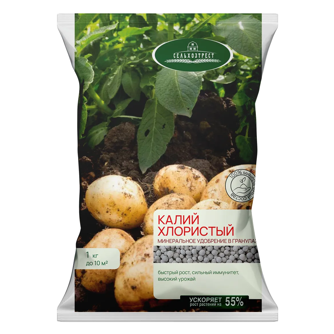 Это отличный состав для профилактики многих серьезных болезней и вредителей. За счет использования хлористого калия возрастает холодоустойчивость многолетних культур. При правильном использовании рассматриваемого удобрения удастся добиться эффективного укрепления корневых систем высаженных на участке растений. Хлористый калий ускоряет рост и развитие свежих побегов. Сводится к минимуму вероятность обезвоживания растений. Заметно возрастает качество плодов. Они вырастают крупными, вкусными и имеют красивый окрас. Увеличивается срок хранения и овощей и ягод