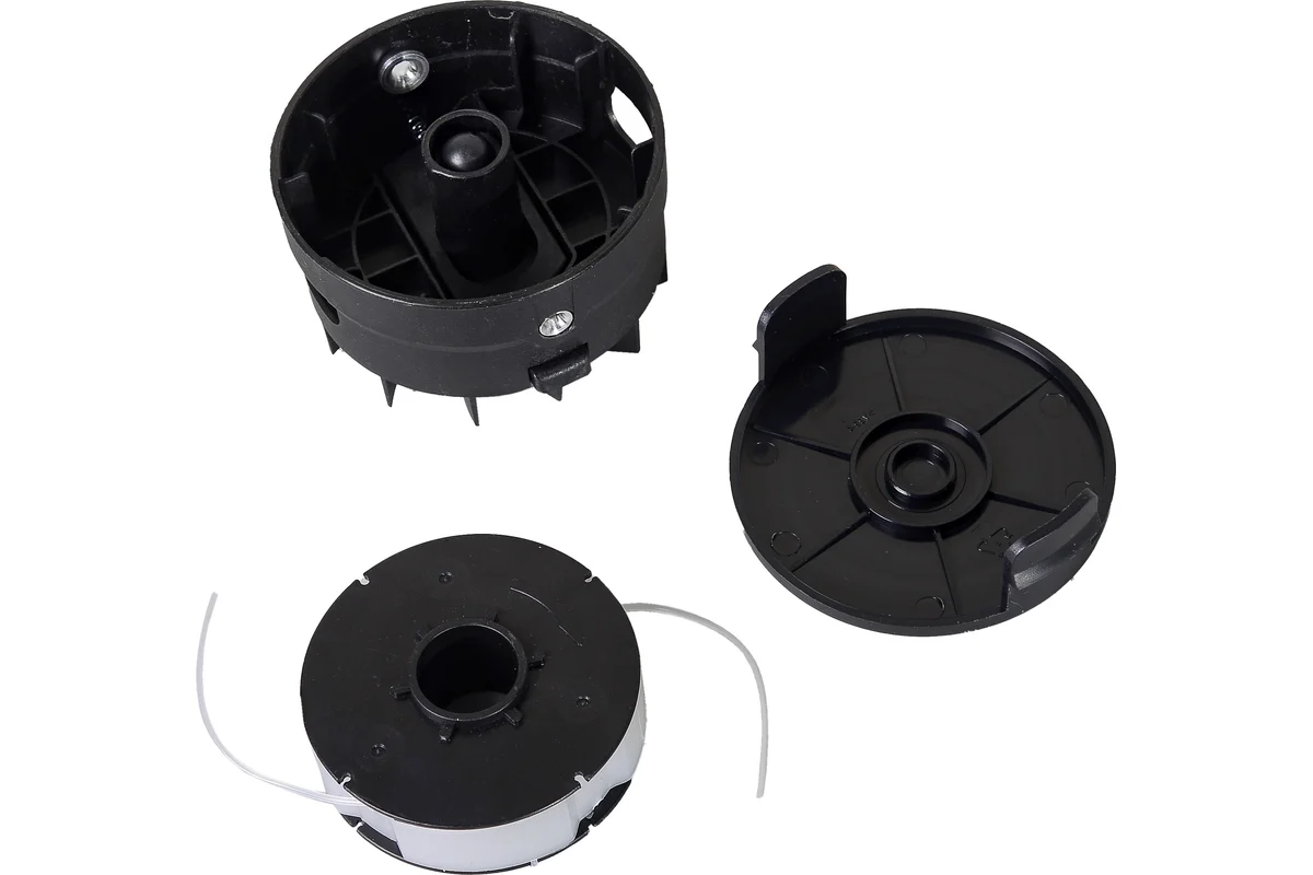 В комплекте с катушкой идет шпуля, которая позволяет легко и быстро заменять леску, а также предотвращает ее запутывание и перекручивание. Катушка изготовлена из ударопрочного пластика и имеет длительный срок службы. Выход концов лески из катушки на нужную длину происходит путем нажатия кнопки на катушке о землю.