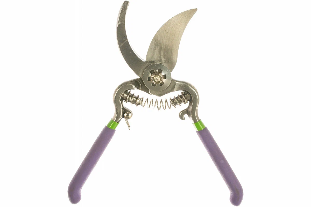 Секатор оснащен пружинным типом привода, что обеспечивает плавность и точность движений при обрезке веток.