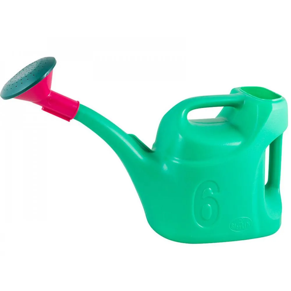 Лейка 6 л Урожайная с рассеивателем. Лейка садовая для полива растений у дома и на даче. Самая компактная из пластмассовых леек, особенно любима женщинами и бабушками за небольшой вес и комфортный полив в теплицах и парниках. Съемный рассеиватель позволяет поливать растения как под корень, так и поверх листьев. Особенность этой модели в том, что на носике есть специальные полозья для хранения рассеивателя: если вам нужно полить растение под корень, снимите рассеиватель и закрепите его на носике. Лейка легко помещается в бак или бочку с отстоявшейся водой. Широкое отверстие для залива воды, две ручки сверху и сбоку помогают надежно удерживать ее в любом положении.