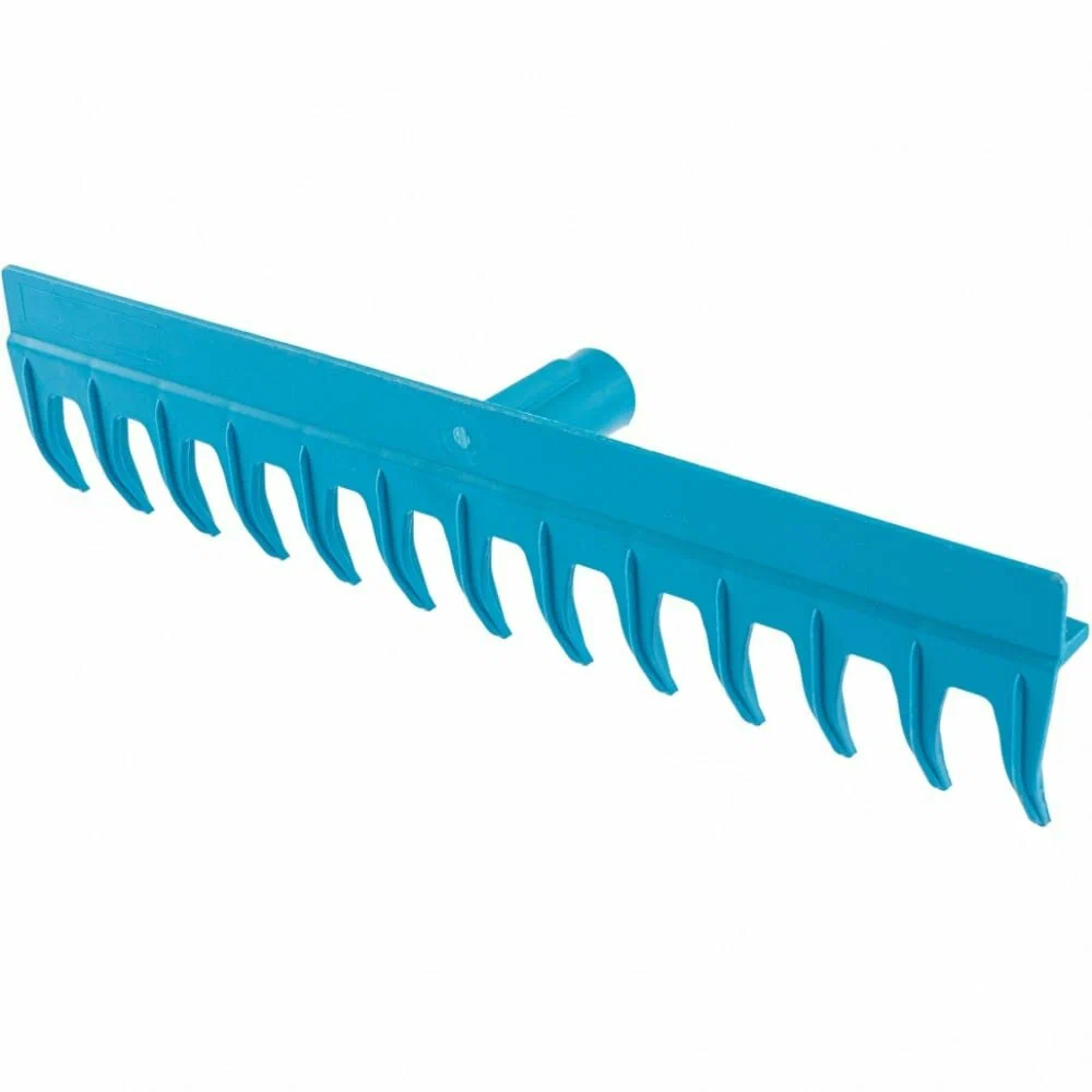 Усиленные пластиковые грабли с прямыми зубьями - садовый инвентарь, предназначенный для рыхления почвы, а также уборки территории. Грабли поставляются без черенка - можно подобрать наиболее подходящий, совместимый с тулейкой диаметром 30 мм.