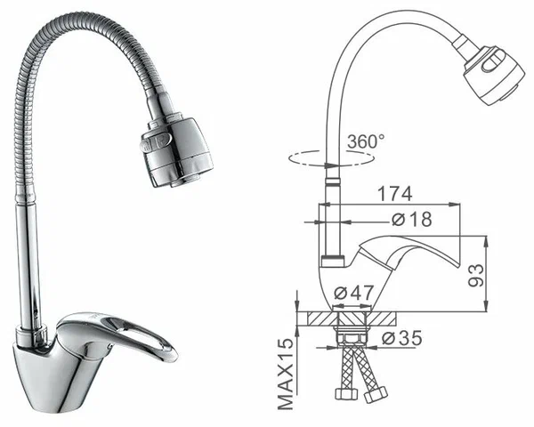 Смеситель для кухни F4303 шар 40мм гибк.излив