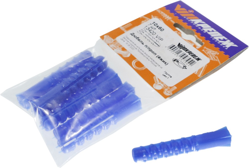 Дюбель ежик VIPS. Изделие позволяет крепить строительные материалы к несущей основе. Корпус выполнен из полипропилена. Дюбель имеет шипы, которые обеспечивают надежное сцепление с поверхностью.