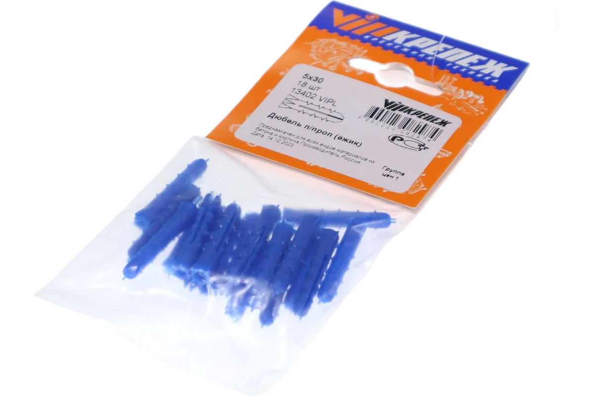 Дюбель ежик VIPКрепеж 5х30 (18 шт) — это идеальное решение для ваших строительных нужд. Этот крепеж изготовлен из прочного полипропилена и имеет диаметр 5 мм, что делает его идеальным для надежного крепления материалов. Длина крепежа составляет 30 мм, и он поставляется в упаковке из 18 штук. Благодаря конструкции в виде ежика этот крепеж обеспечивает прочный захват, который не выпадет из несущей конструкции и не ослабевает со временем. Характеристики. Цвет. Синий. Тип. Дюбель-ёжик. Диаметр. 5 мм. Длина. 30 мм. Фасовка. 18 шт.