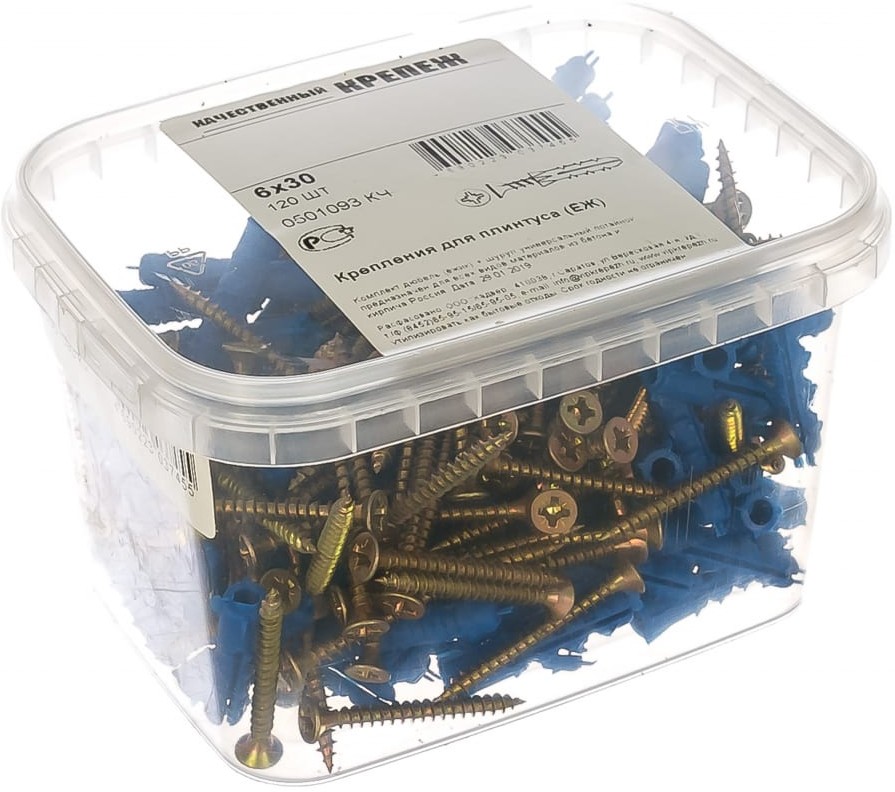 Дюбель ёж с шурупом Качественный Крепеж для крепления плинтусов 6х30 120 шт 0501093 КЧ - это крепежный набор, который используется для фиксации строительных и отделочных материалов. Изделие монтируется в полнотелую основу. Дюбель изготовлен из полипропилена. Шуруп выполнен из стали Ст 10 с анодированным покрытием.