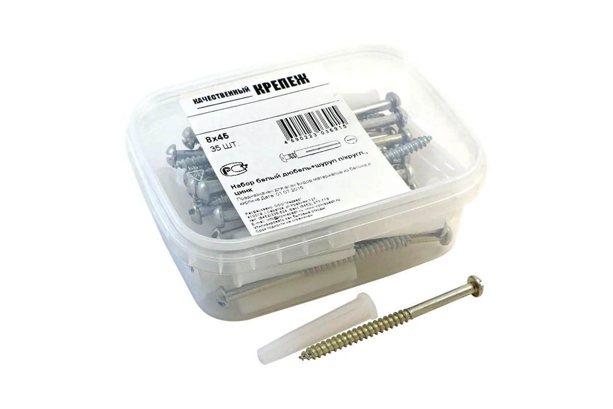 Набор белый дюбель 8х45+шур 5х70 п/гол.оцинк. 35шт