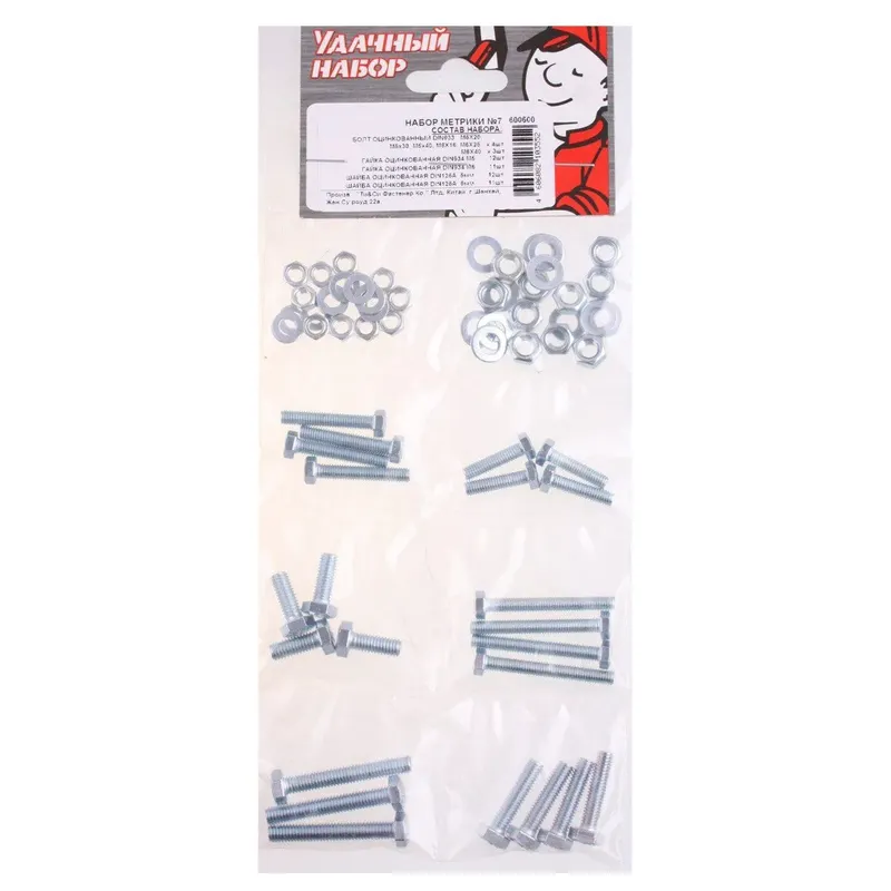 Набор метрики №7 СТРОЙБАТ белый цинк 69шт. - этот набор фурнитуры станет незаменимым помощником при создании и ремонте конструкций из дерева и металла. Комплект включает в себя все необходимые детали: болты, гайки и шайбы. Каждая деталь имеет метрическую резьбу, что обеспечивает надежное и прочное крепление. Благодаря большому количеству деталей в наборе, вы сможете использовать их для самых разнообразных задач. Идеально подходит для использования при монтаже и ремонте мебели, строительстве, а также для кузовных и контейнерных работ. Вы сможете создать надежные и прочные конструкции, которые прослужат долгие годы. Вся фурнитура изготовлена из высококачественного металла - оцинкованной стали. Это гарантирует ее долговечность и стойкость к коррозии. Вы можете быть уверены, что ваша мебель или конструкция будут выглядеть безупречно даже спустя много лет.