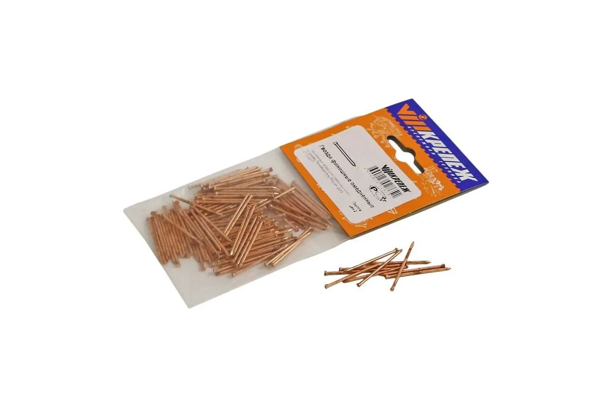 Гвозди финишные омедненные отличаются тонким стержнем и некрупной цилиндрической шляпкой, что делает их практически невидимыми и легко скрывает от глаз место монтажа, обеспечивая потайное крепление. Внешнее покрытие из меди играет и защитную, и декоративную роль. Благодаря медному напылению гвозди предохраняются от коррозии, улучшается сцепка с различными видами металлических оснований.
