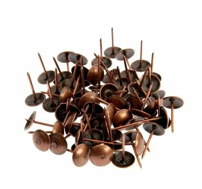 Гвозди мебельные – это декоративные гвозди, которые широко применяются при обивке дверных полотен, для закрепления ткани при обшивке мягкой мебели, а также для декорирования различных деревянных изделий. Гвозди мебельные изготовлены из железной гладкой шляпки и железного стержня с заостренным концом.