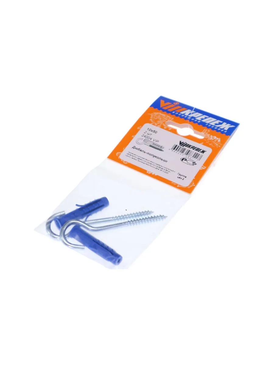 Дюбель-полукольцо VIPКрепеж S-10 10х50 — это крепежный элемент, предназначенный для крепления конструкций к сплошным и пустотелым стеновым материалам. Это универсальное и надежное изделие идеально подходит для подвешивания ламп, картин, зеркал и других лёгких конструкций. Он имеет длину 50 мм, диаметр 10 мм и изготовлен из прочного полипропилена и имеет крюк с резьбой из стали.