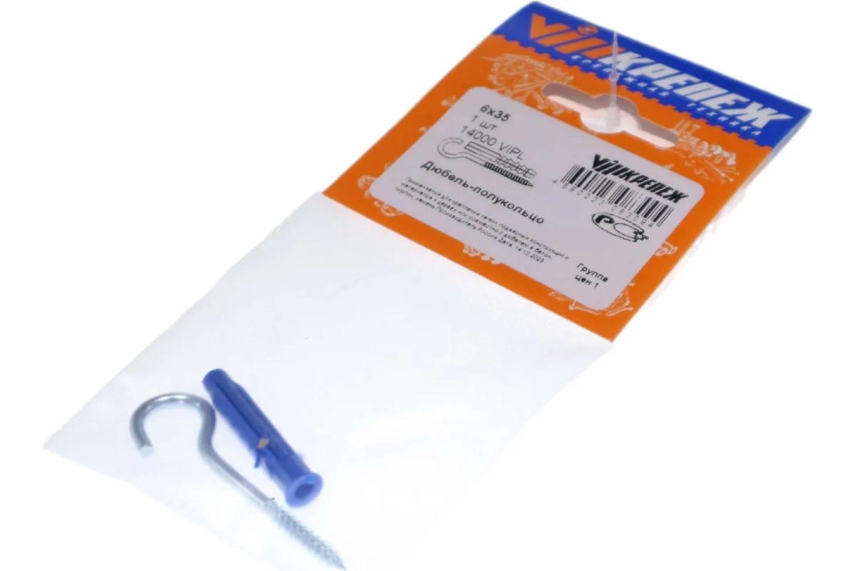 Дюбель-полукольцо VIPКрепеж S-6 6х35 — это крепежный элемент, предназначенный для крепления конструкций к сплошным и пустотелым стеновым материалам. Это универсальное и надежное изделие идеально подходит для подвешивания ламп, картин, зеркал и других лёгких конструкций. Он имеет длину 35 мм, диаметр 6 мм и изготовлен из прочного полипропилена и имеет крюк с резьбой из стали.