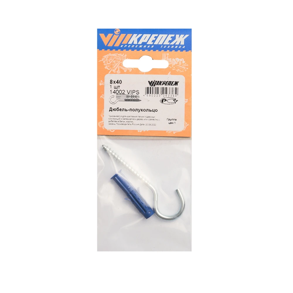 Дюбель-полукольцо VIPКрепеж S-8 8х40 14002 — это крепежный элемент, предназначенный для крепления конструкций к сплошным и пустотелым стеновым материалам. Это универсальное и надежное изделие идеально подходит для подвешивания ламп, картин, зеркал и других лёгких конструкций. Он имеет длину 40 мм, диаметр 8 мм и изготовлен из прочного полипропилена и имеет крюк с резьбой из стали.