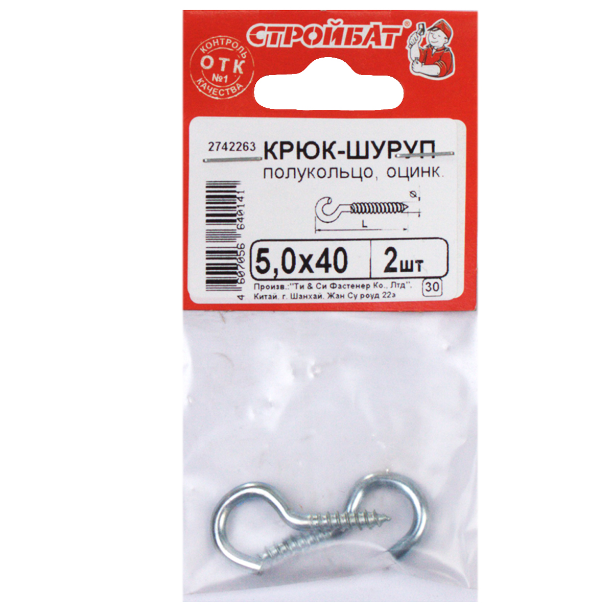 Крюк-полукольцо 5,0х40 2шт Стройбат