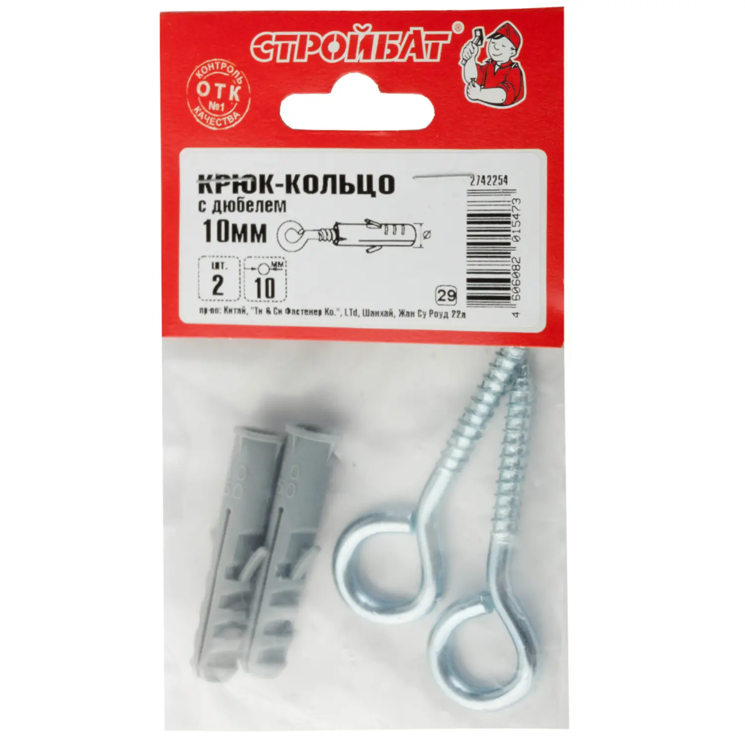 Крюк-кольцо с дюбелем 10мм (2шт) Стройбат