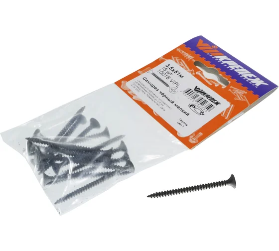 Саморез 3.5х51 — используется для соединения металлических профилей с гипсокартонными листами. Саморез имеет потайную головку с крестообразным шлицем, частую резьбу по всей длине для надёжного крепления к металлу и острый наконечник.