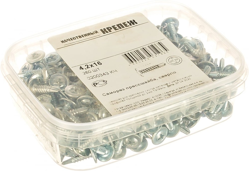 Саморез с прессшайбой Качественный Крепеж 4.2х16 сверло 260 шт 0200343 КЧ является простым и незаменимым крепежным элементом для монтажа листовых материалов. Изделие выполнено из стали Ст 10. Саморез имеет оцинкованное покрытие для защиты от коррозии.