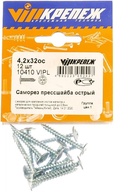Саморез с прессшайбой VIPКрепеж острый 4,2х32 12 шт 10410 VIPL - это крепеж для соединения материалов между собой. Корпус изготовлен из оцинкованной стали марки Ст 10, стойкой к возникновению коррозии. Упаковка - пакет 12 штук.