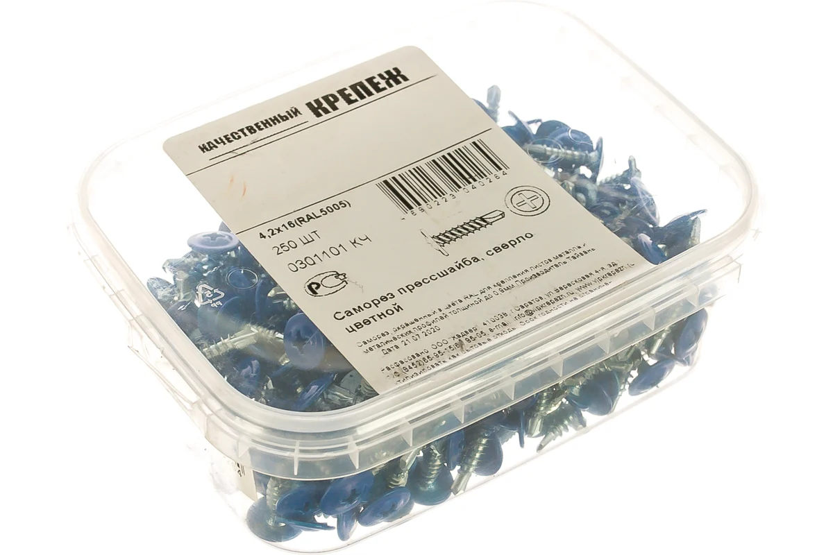 Саморез прессшайба синяя 4,2х16 сверло 250шт