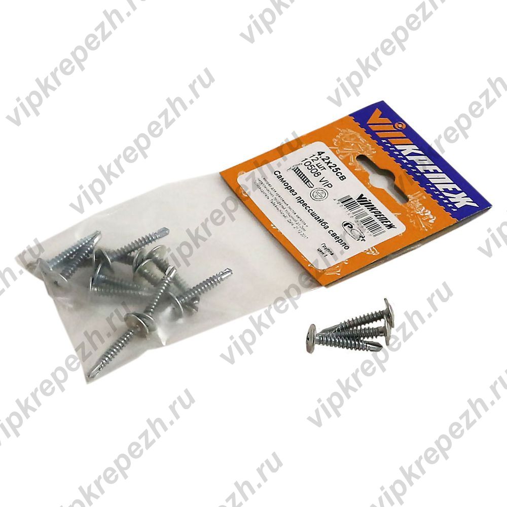 Саморез с прессшайбой VIPКрепеж сверло 4,2х25 12 шт 10508 VIP обеспечивает прочное и надежное соединение материалов. Изделие служит для работы по металлу. Корпус выполнен из стали марки Ст 10 и покрыт цинком для защиты от коррозии.