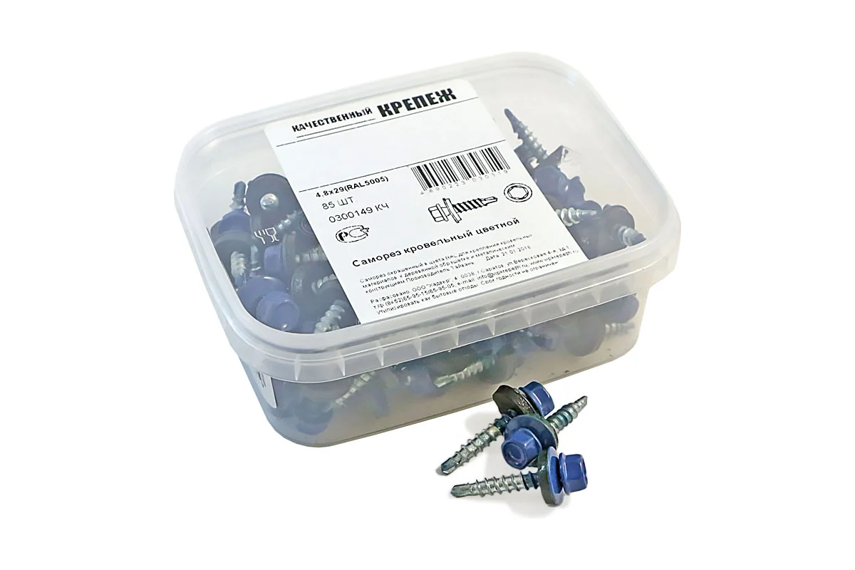 Кровельный саморез «Качественный крепёж» 4,8/29 RAL500585 синего цвета, фасовка 85 шт.