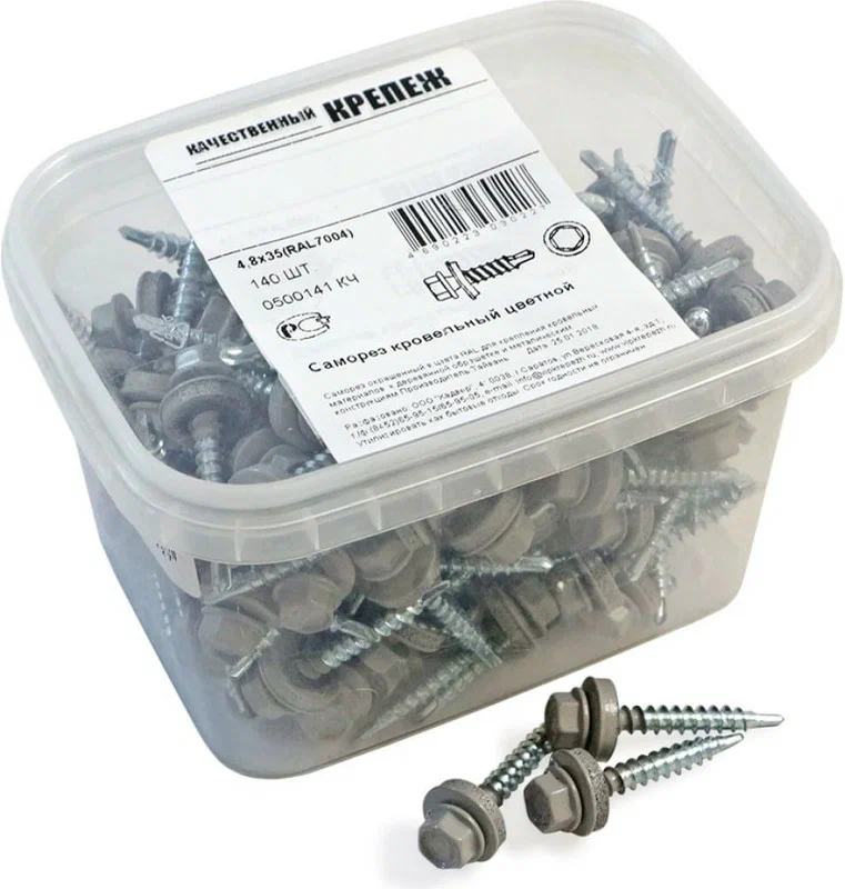 Саморез кровельный имеет шестигранную головку, полную резьбу по всей длине стержня, наконечник в виде бура и шайбу с герметизирующей EPDM-прокладкой. Изготовлен из углеродистой стали с антикоррозионным цинковым покрытием.