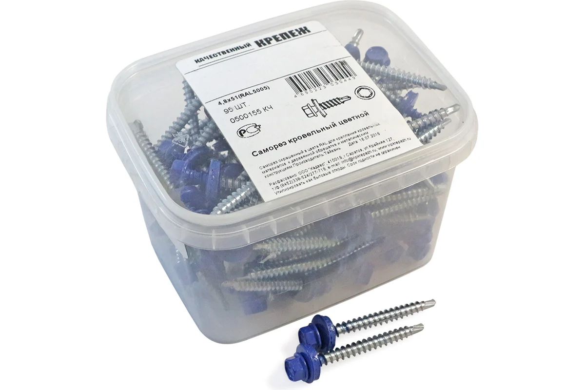 Кровельный саморез 0500155 КЧ синего цвета (RAL 5005) с фасовкой 95 шт..