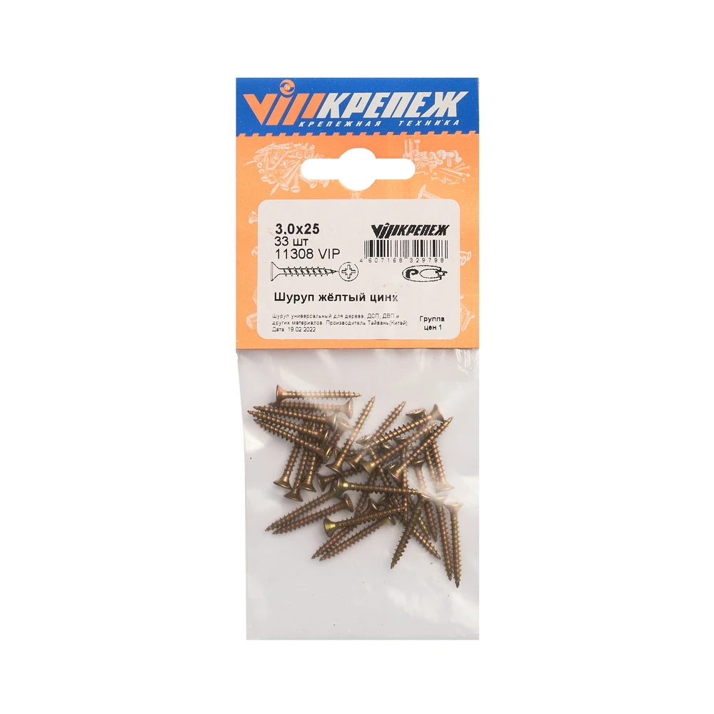 Шуруп желтый цинк 3,0/25 33шт