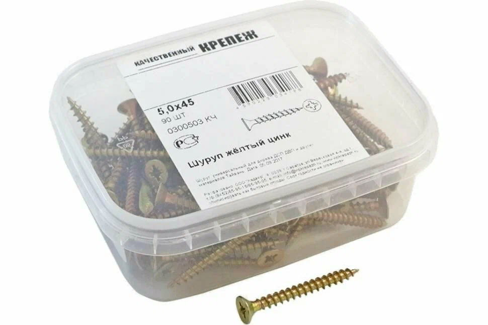 Шуруп «Качественный КРЕПЕЖ» жёлтый цинк 5,0x45, 90 шт. (артикул 0300503 КЧ).