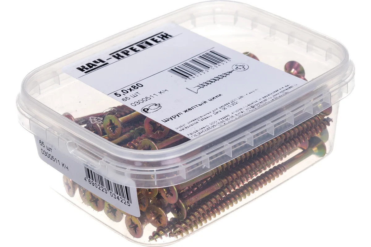 Прочные шурупы 5х80 мм с жёлтым цинковым покрытием идеально подходят для крепления массивных деревянных элементов. Отличаются высокой устойчивостью к коррозии и механическим нагрузкам. Идеальны для каркасного строительства, сборки опор, рам и других конструкций, где требуется надёжная фиксация.