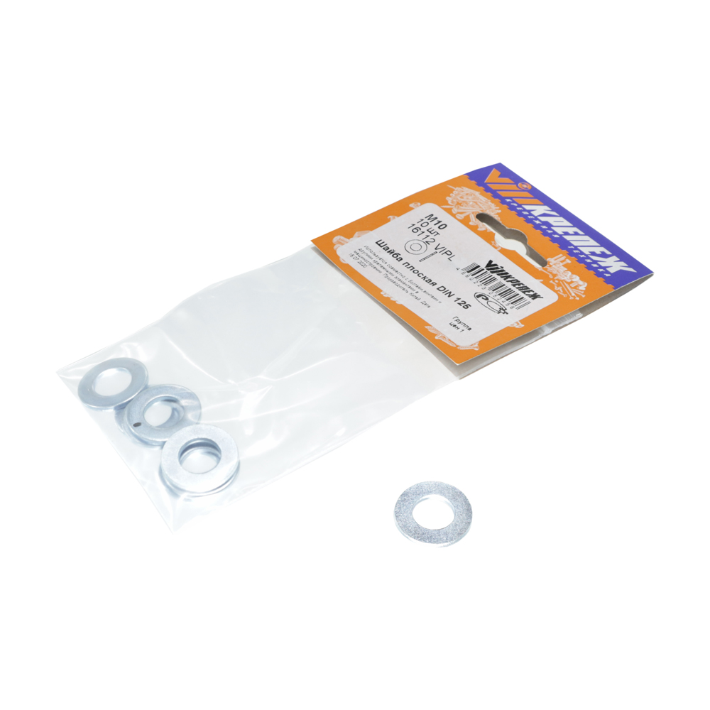 Плоская шайба vipкрепеж din 125, м10, 10 шт. 16112 VIPL используется совместно с болтами, винтами и другими крепежными элементами в машиностроении, строительстве. Служит для увеличения прижимной площади соединяемых деталей.