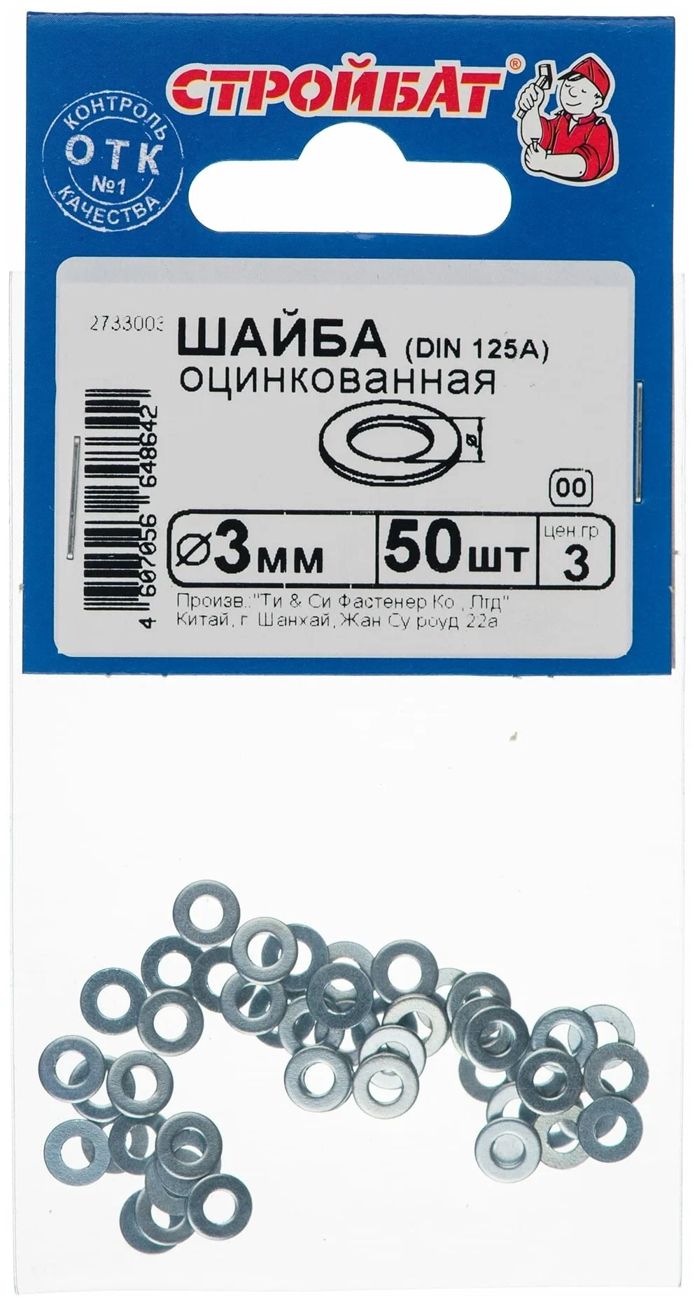 Шайба DIN 125A - стальной крепежный элемент, соответствующий европейскому стандарту DIN 125, имеющий класс точности А. Диаметр шайбы - 3 мм.