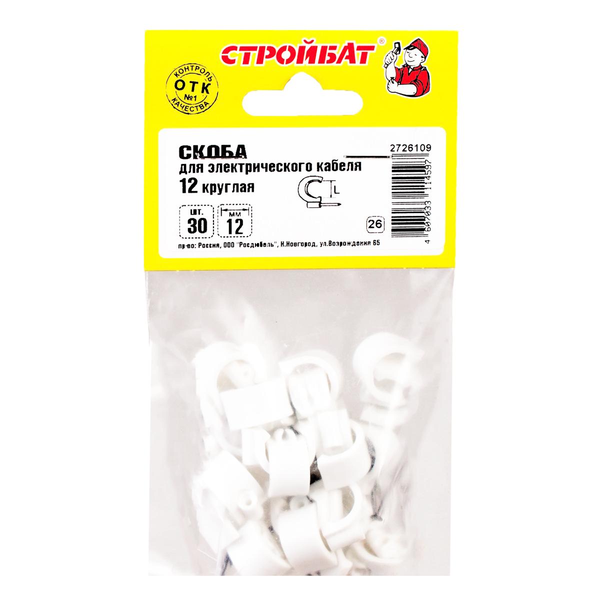 Скобы д/кабеля Стройбат круглые 12мм 30шт