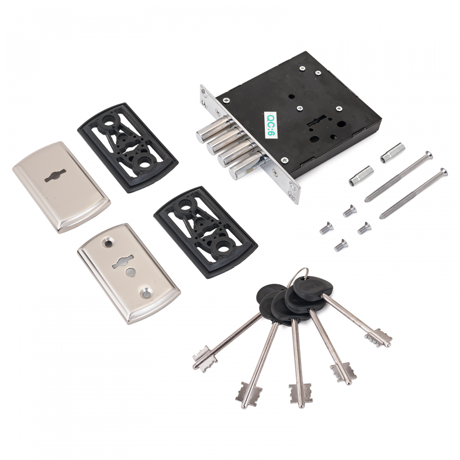 Замок врезной «АЛЛЮР ЗВ1-07-С б/о для кит. металл. дверей» — сувальдный механический замок, предназначенный для защиты входных конструкций из стали китайского производства.
