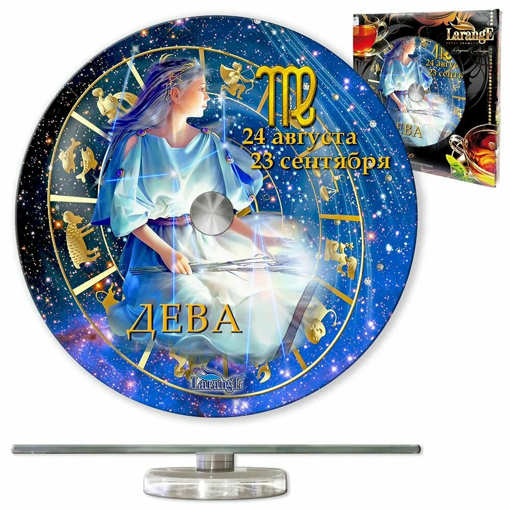 Блюдо сервировочное врачающееся стекло 28см Знак зодиака ДЕВА