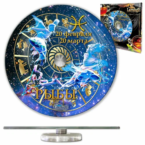 Блюдо сервировочное врачающееся стекло 28см Знак зодиака РЫБЫ