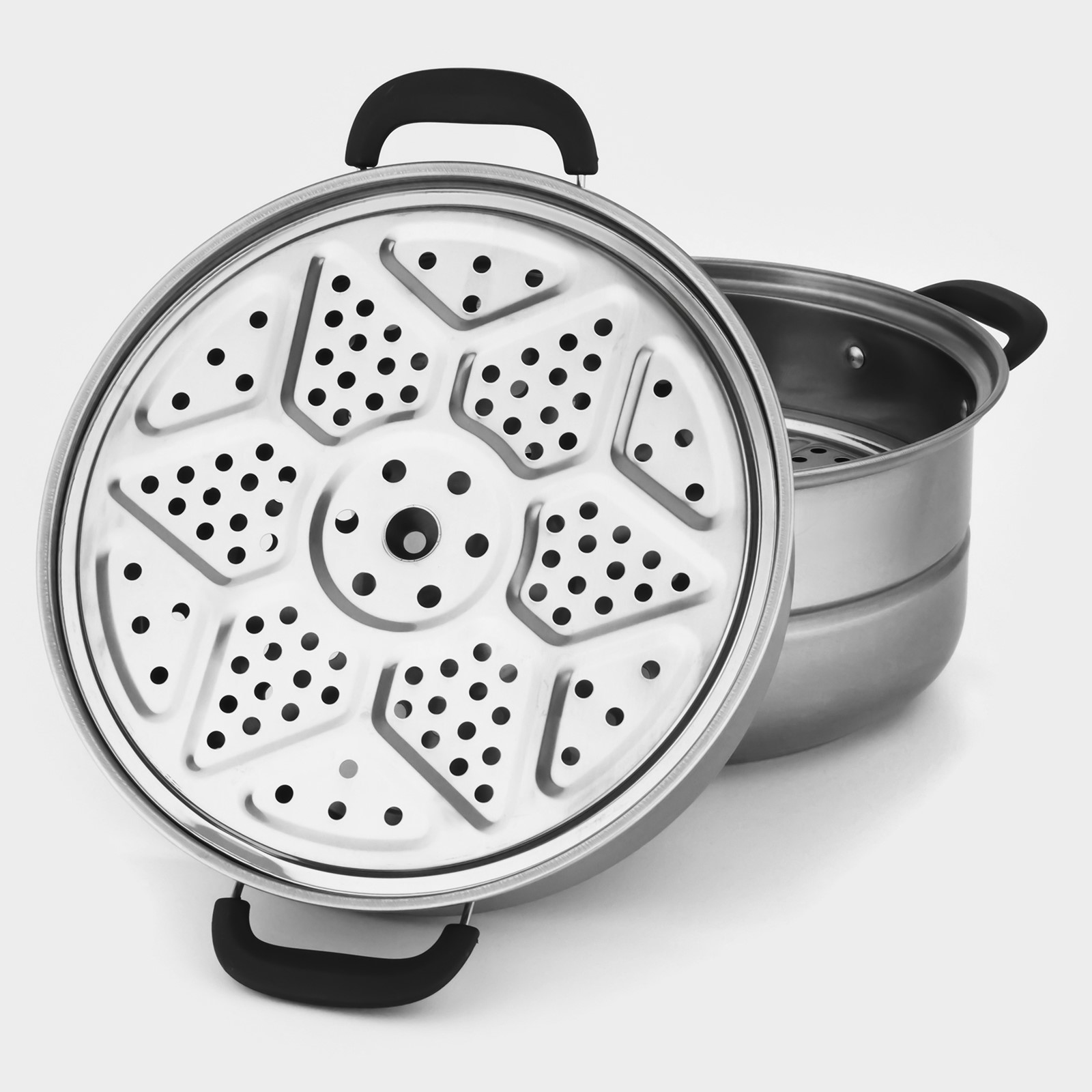 Изготовленная из высококачественной нержавеющей стали, эта пароварка не только имеет стильный хромированный блеск, но и гарантирует долговечность и легкость в уходе. Совместима с разными типами плит, включая газовые, электрические и стеклокерамические, что делает её универсальным инструментом для любой кухни.