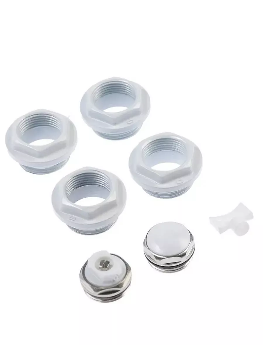 Футорки снабжены силиконовыми прокладками. Также в комплект включены пробка для футорки, ручной самоуплотняющийся воздухоотводчик, ключ для воздухоотводчика.