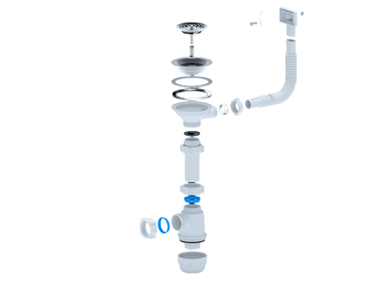 Сифон для кухонных моек с диаметром сливного отверстия 90 мм, бутылочного типа с увеличенным корпусом. С разборным выпуском и нержавеющей решеткой, с жестким прямоугольным переливом для моек из нержавеющей стали. Выпуск перелива оборудован универсальной прокладкой для круглых и прямоугольных моек, нужная сторона прокладки достигается путем переворота. Выход для подключения к канализации 40 мм.