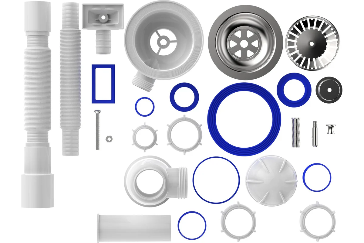 Идет в комплекте с гофротрубой с универсальным выходом под два диаметра 40/50мм для подключения к канализации. Сифон прост в установке, позволяет прочистить его в случае засорения без демонтажа и способен улавливать мелкие предметы, например, кольца или серьги.