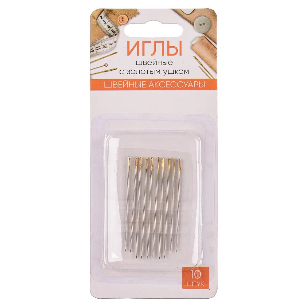 Набор швейных игл 10шт, с золотым ушком, сталь