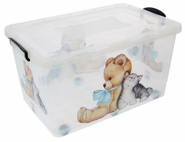 Контейнер д/хранения 50л. прозрачный Мишка и Котенок