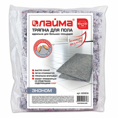 Тряпка для пола ЛАЙМА эконом 80х100см хлопок