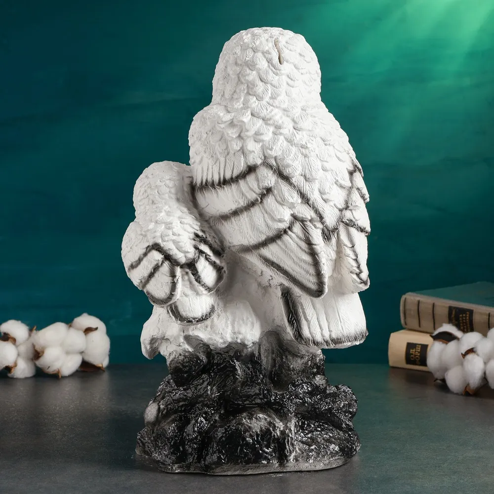 Копилка — универсальный вариант подарка любому человеку, ведь каждый из нас мечтает о какой-то дорогостоящей вещи и откладывает или собирается откладывать деньги на её приобретение. Вместительная Копилка для денег «Совы полярные», полистоун, 20×18×33 см станет прекрасным хранителем сбережений и украшением интерьера. Она выглядит так ярко и эффектно, что проходя мимо, обязательно захочется забросить пару монет.