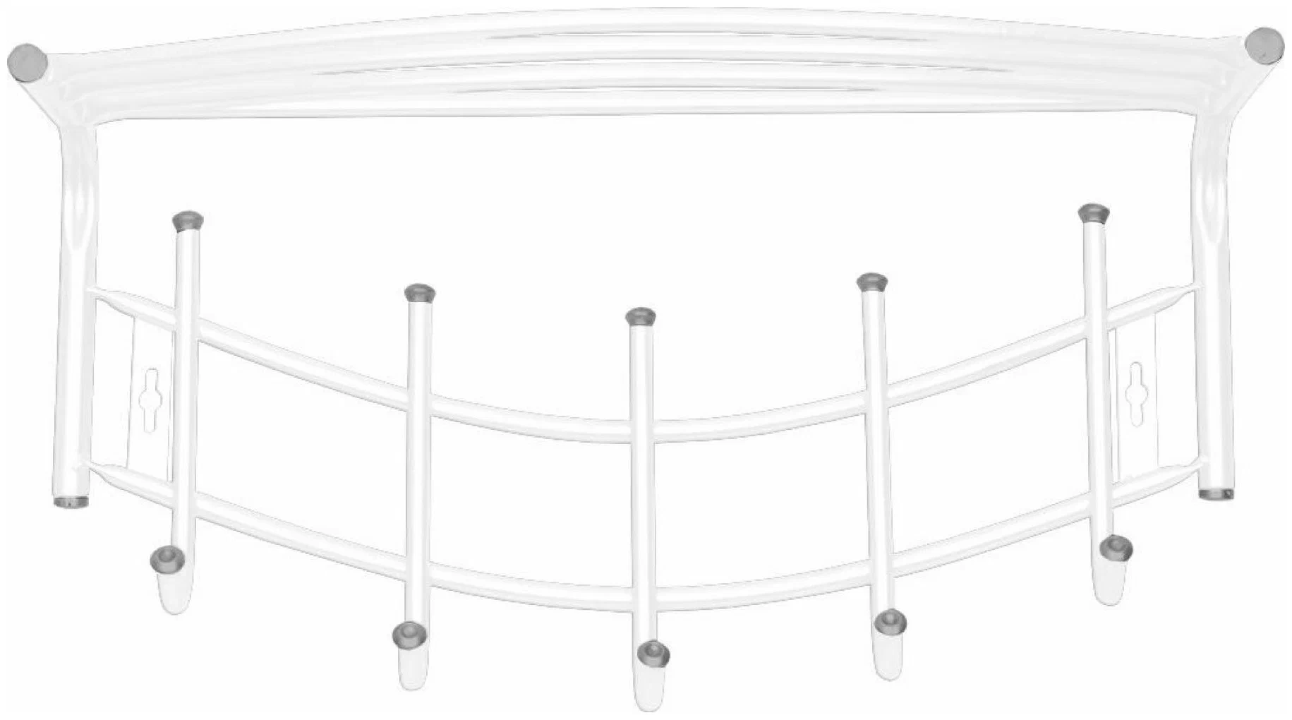 В конструкцию входят 5 крючков с пластиковыми колпачками. Все изделия выполнены из металла с порошковым покрытием, устойчивым к механическим воздействиям.