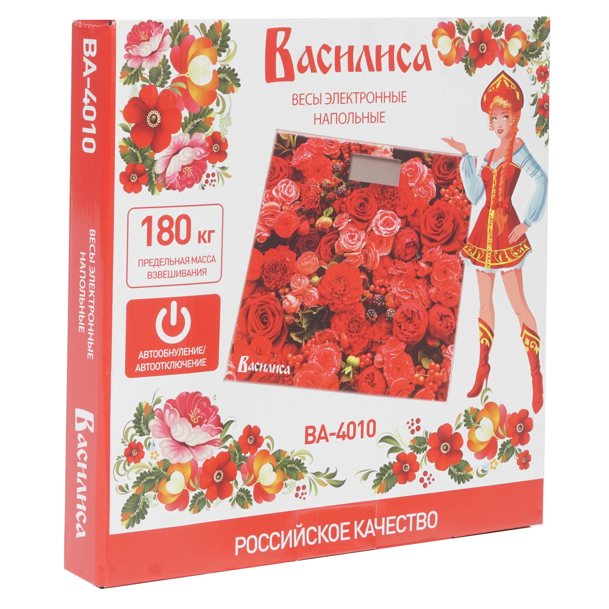 Напольные электронные весы ВАСИЛИСА ВА-4010 Цветы : 180 кг, 26х26см / 0R-00005484 позволяют быстро определить текущий вес человека. Допустимо использовать на жесткой ровной поверхности.